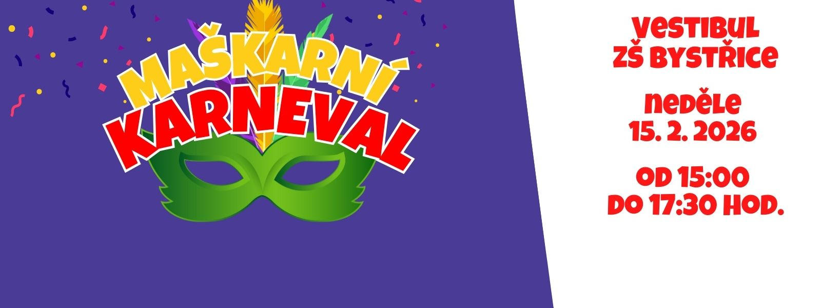 Zveme všechny děti na veselý maškarní karneval plný her, soutěží, tance a zábavy.